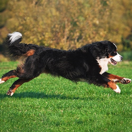 Bernese Mountain Dogs are known for their energetic, puppy-like behaviour right into their senior years so they need a fairly active household. As they were bred to be working dogs, they need to be kept active both physically and mentally. Remember that Bernese Mountain Dogs were bred to work in the cold, snowy mountains so you’ll need to make sure they don’t overheat, especially in warmer weather.