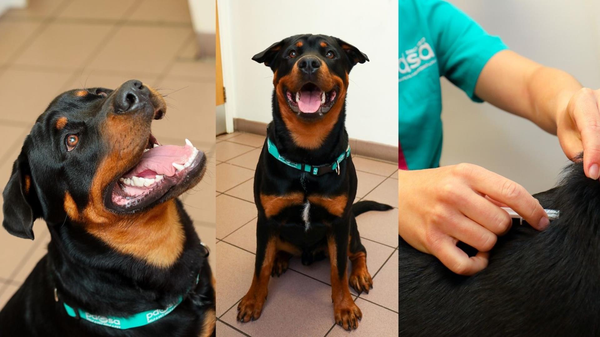 7-year-old Rottweiler cross Tinkerbelle was treated by PDSA vets for an abscess that had grown to the size of a tennis ball on her chin.