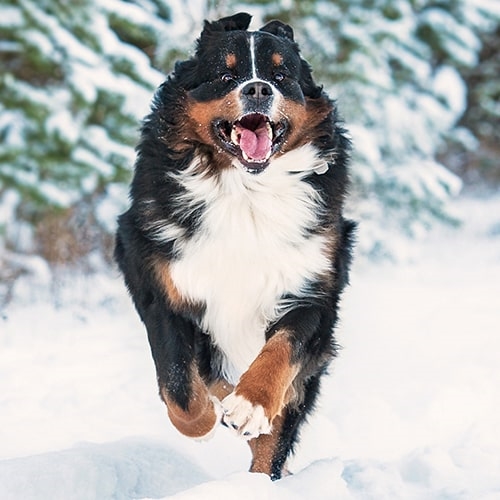 Bernese Mountain Dogs are known for their energetic, puppy-like behaviour right into their senior years so they need a fairly active household. As they were bred to be working dogs, they need to be kept active both physically and mentally. Remember that Bernese Mountain Dogs were bred to work in the cold, snowy mountains so you’ll need to make sure they don’t overheat, especially in warmer weather.