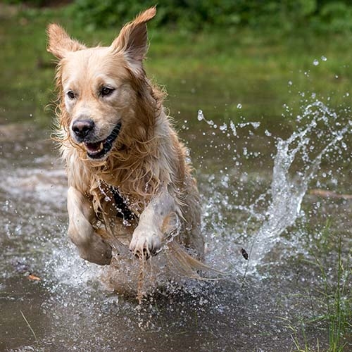 You may also find that your Retriever loves water (including any and all muddy puddles) and swimming. Make sure they stay safe around the water and if they get mucky, use a dog safe shampoo.