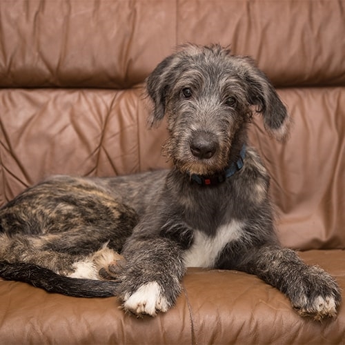 Irish Wolfhounds have quite wiry fur giving them their shaggy appearance. Your dog shouldn’t need bathing unless they roll in something smelly, but if you ever need to you might want to take them to a professional groomer. Their large size might make it a bit tricky at home!