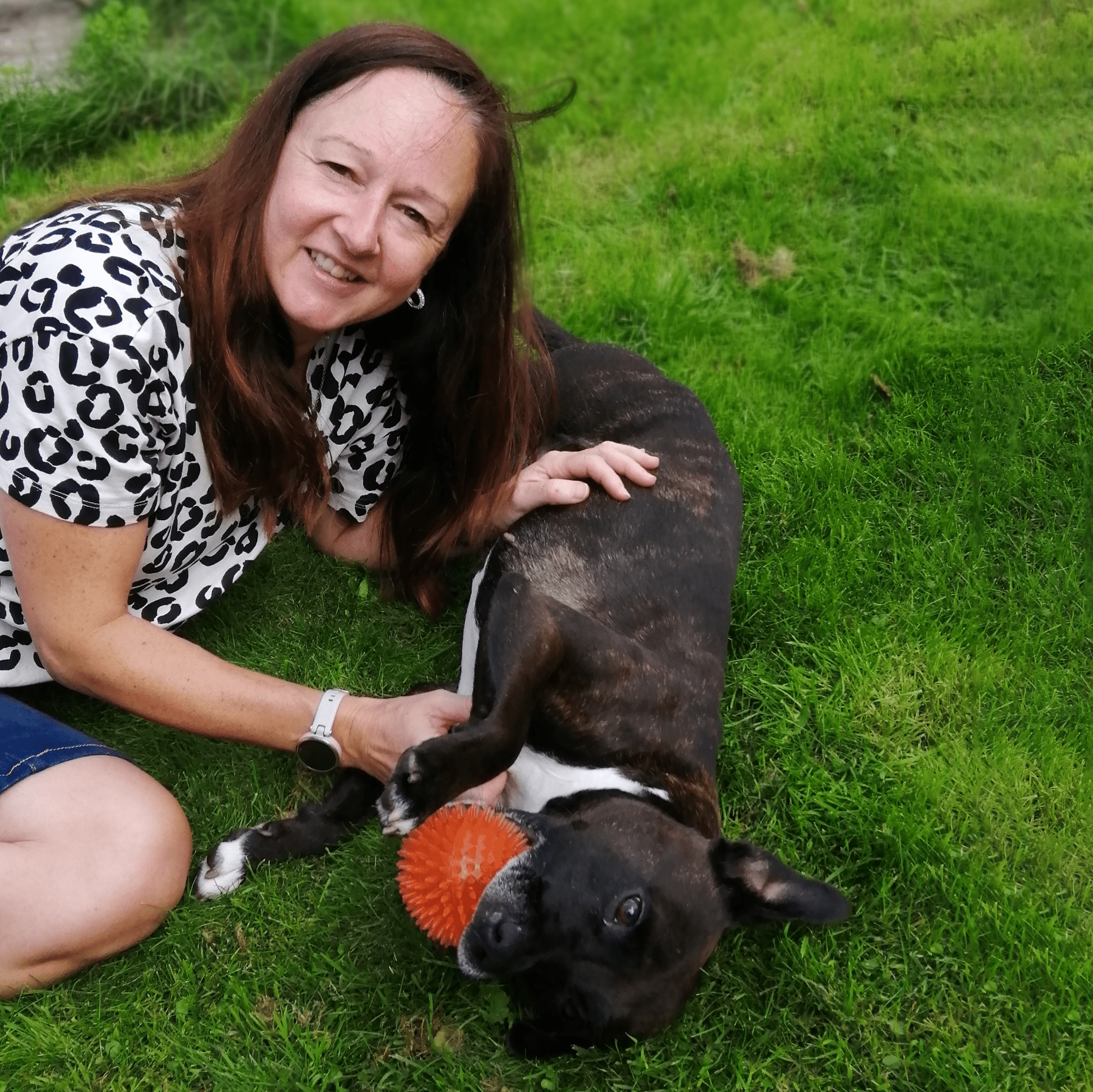 In March 2023 my husband and I rehomed a timid two-year-old stray who we named Ruby. We are thrilled to have her in our family and love seeing her confidence grow day by day. She is never happier than when playing in the garden with her favourite ball or having her tummy tickled (or both!).