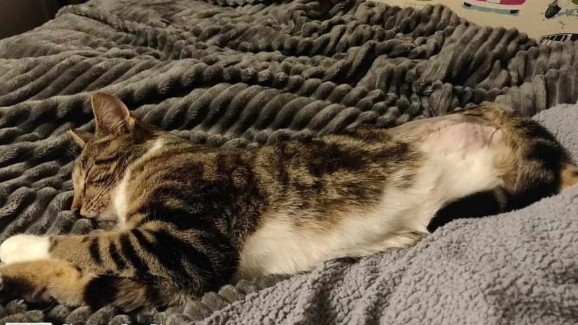 Two-year-old cat Milo needed surgery to treat his injuries after falling off a wardrobe