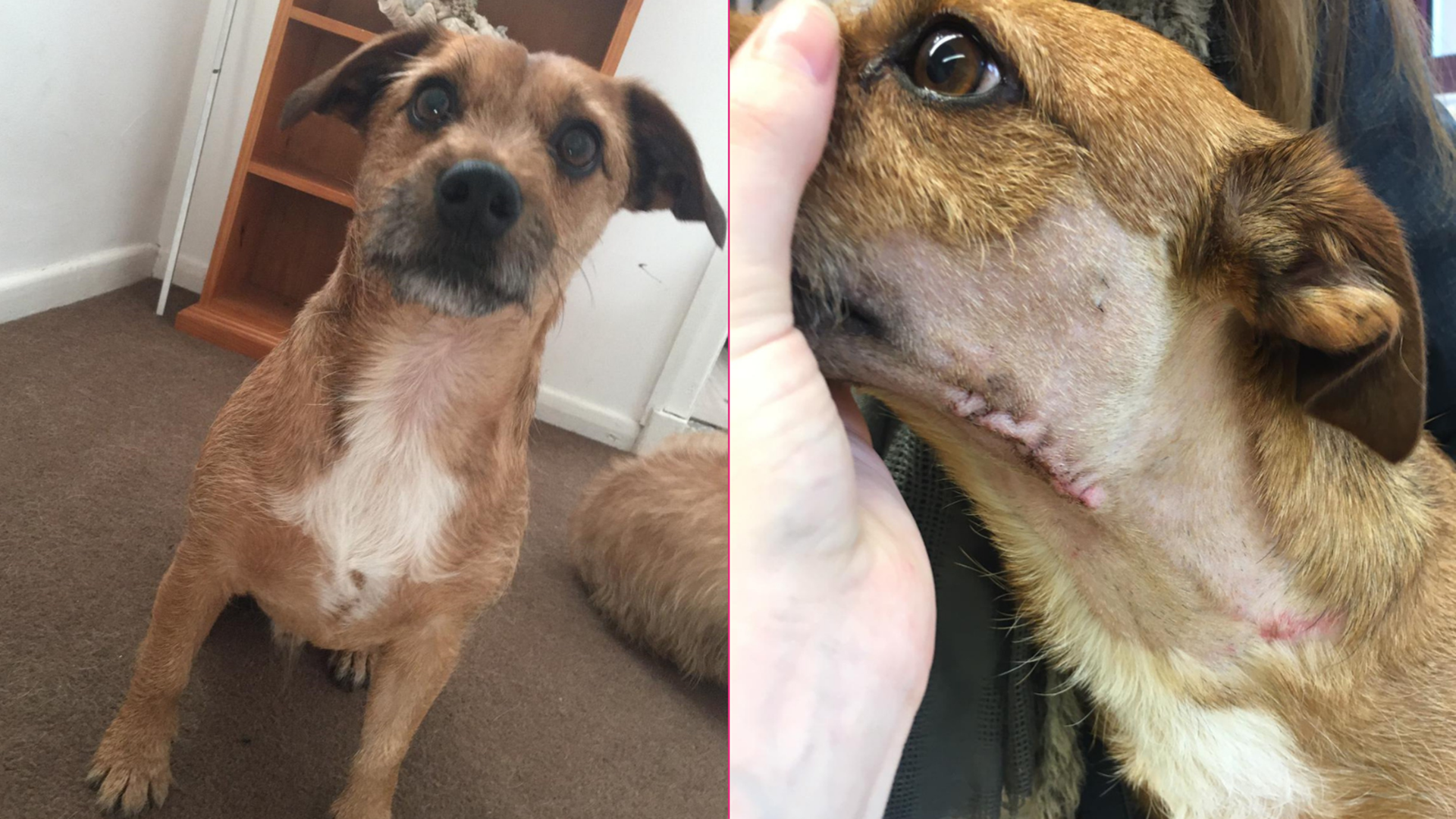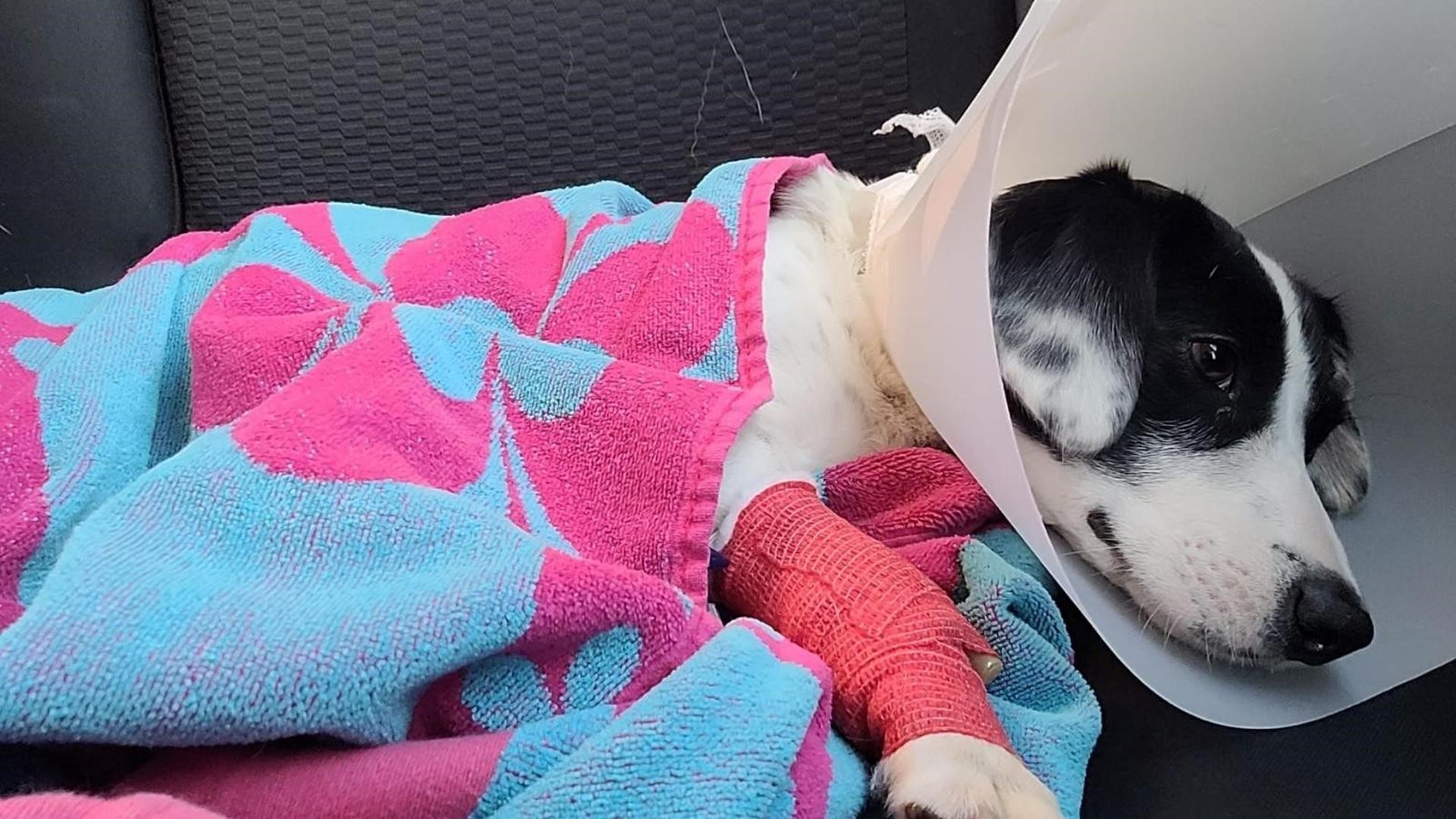 Toby's owner was distraught after finding Toby covered in blood, with bite marks to his ear and a broken jaw.