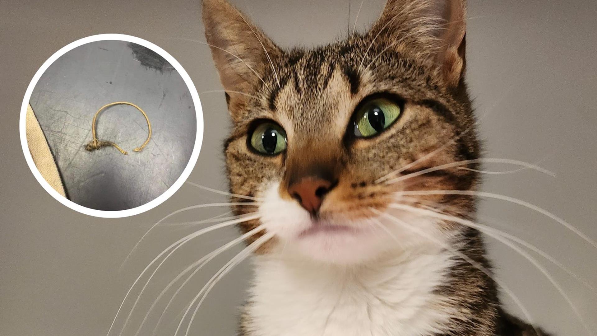 Six-month-old kitten, Bear, needed emergency surgery at PDSA after swallowing string from beef packaging.