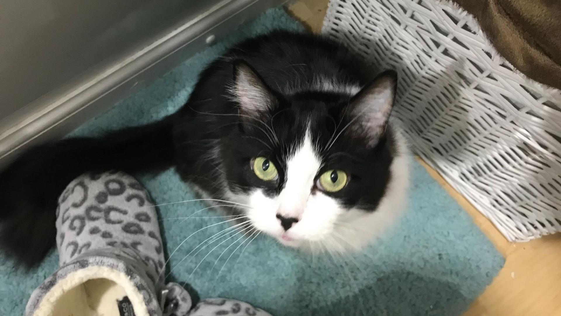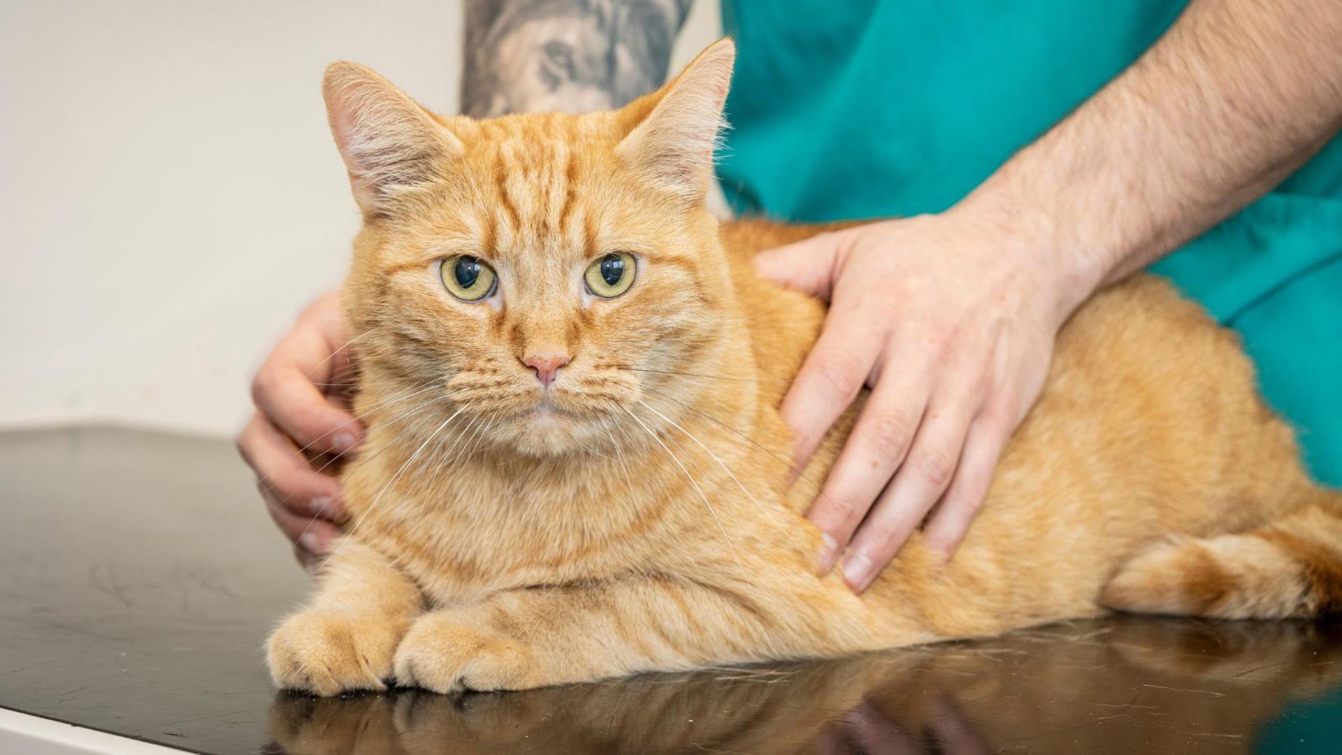 Charismatic cat, Custard, needed emergency treatment at PDSA after being transferred for a blocked bladder.