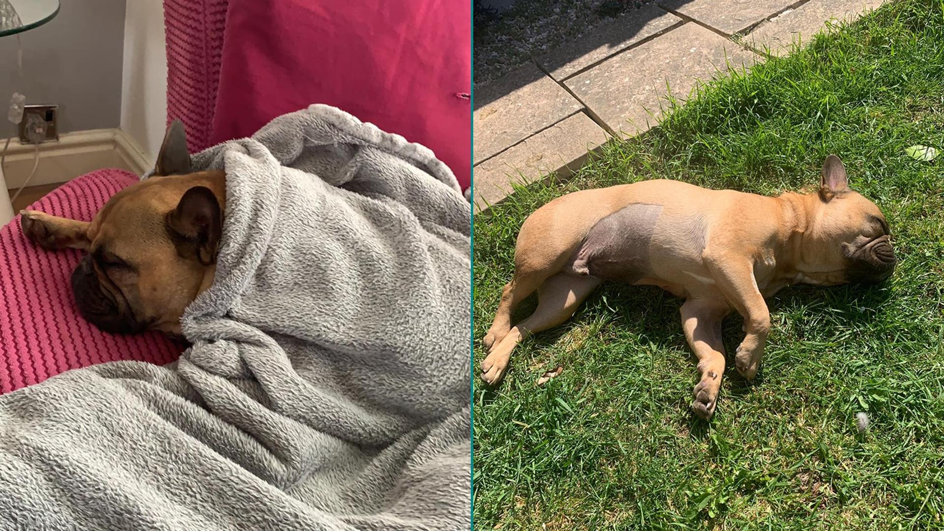 Paris, a French Bulldog, needed life-saving surgery at PDSA after swallowing some floral string lights.