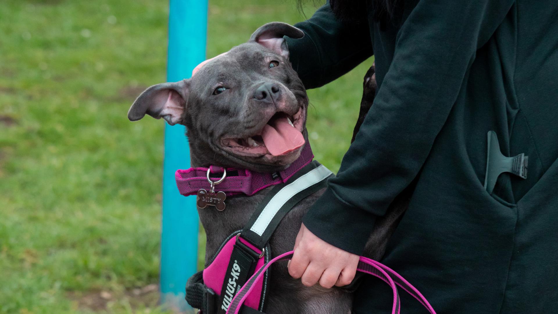 Five-month-old Staffordshire Bull Terrier puppy, Misty, is on the mend thanks to PDSA Vets.