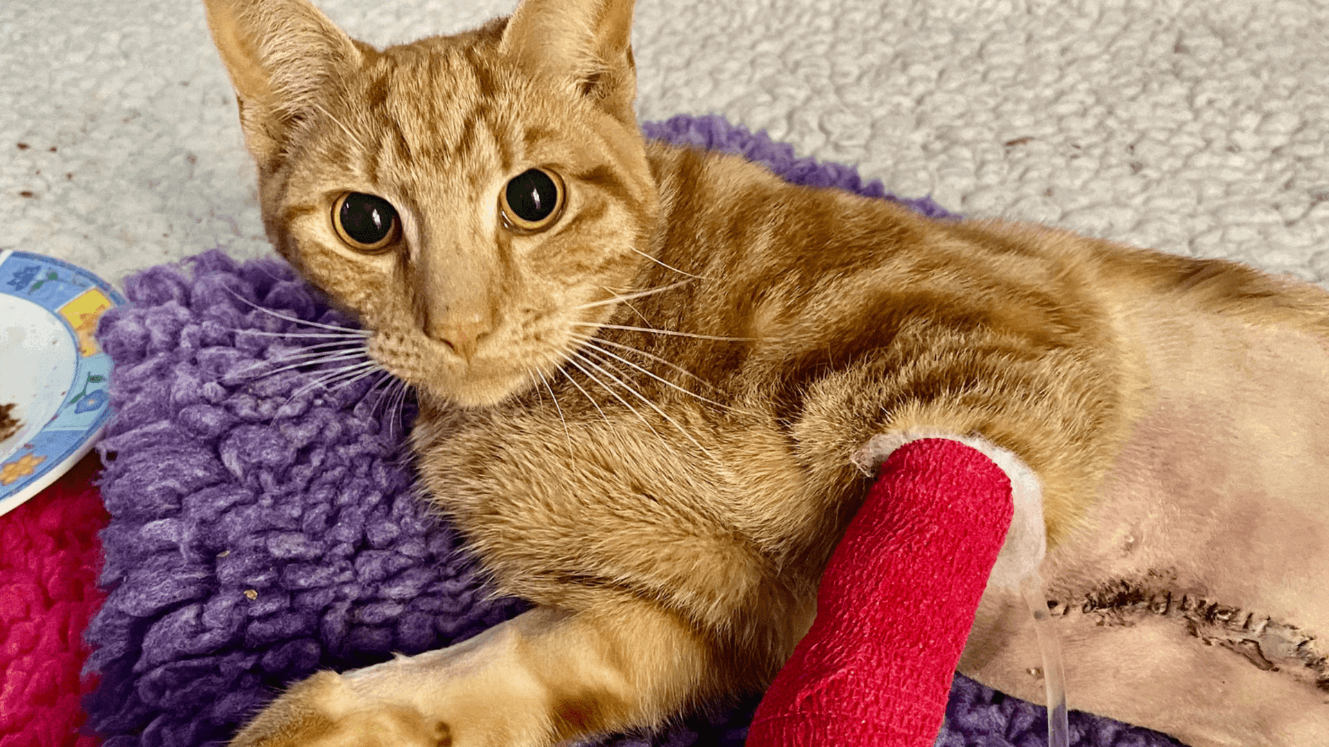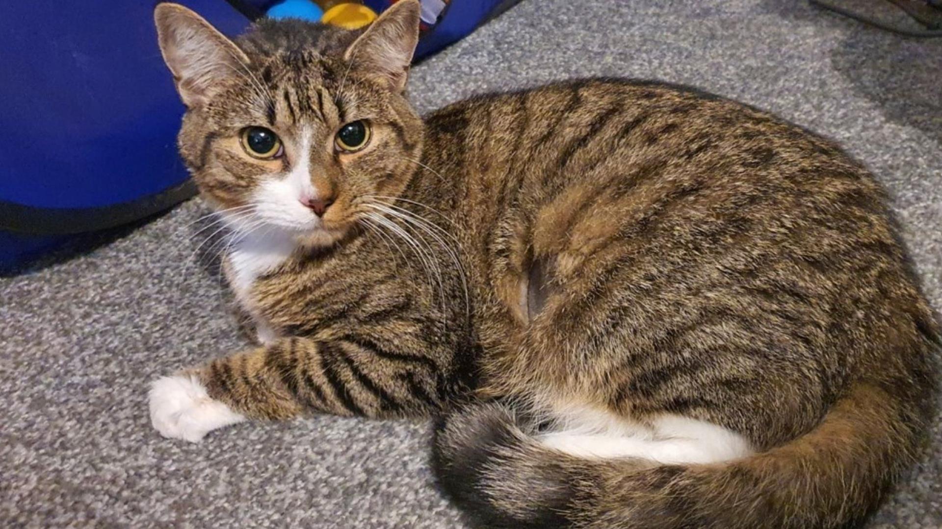 Two-year-old cat, Carrot Cake, narrowly avoided losing her leg, thanks to PDSA, after an accident left her badly injured and unable to walk.
