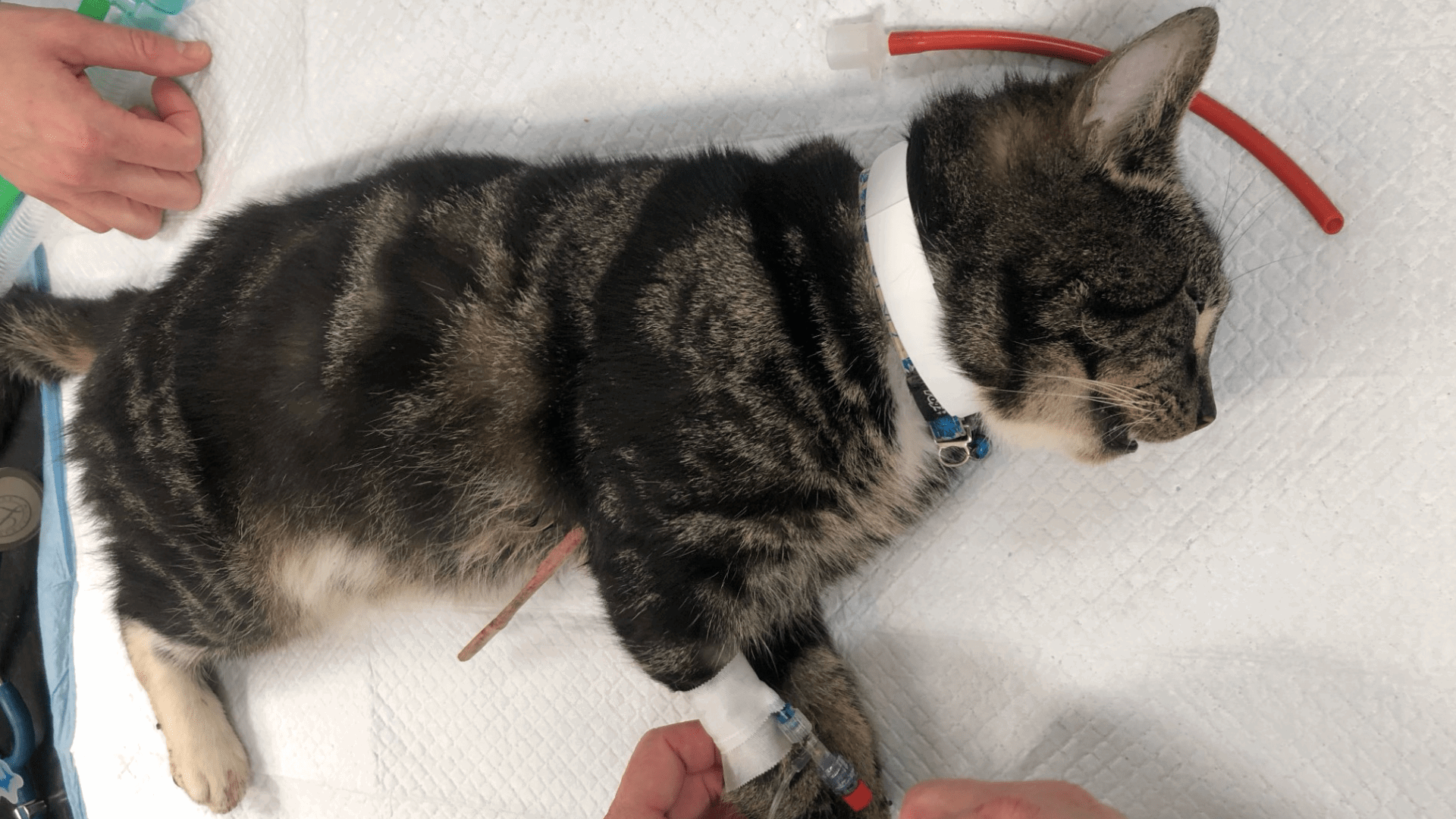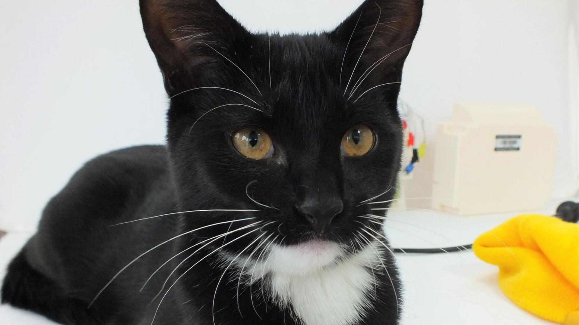 A three-year-old cat, Shadow, needed urgent treatment at Thamesmead PDSA Pet Hospital after becoming impaled onto a ten-inch-long bamboo stick.