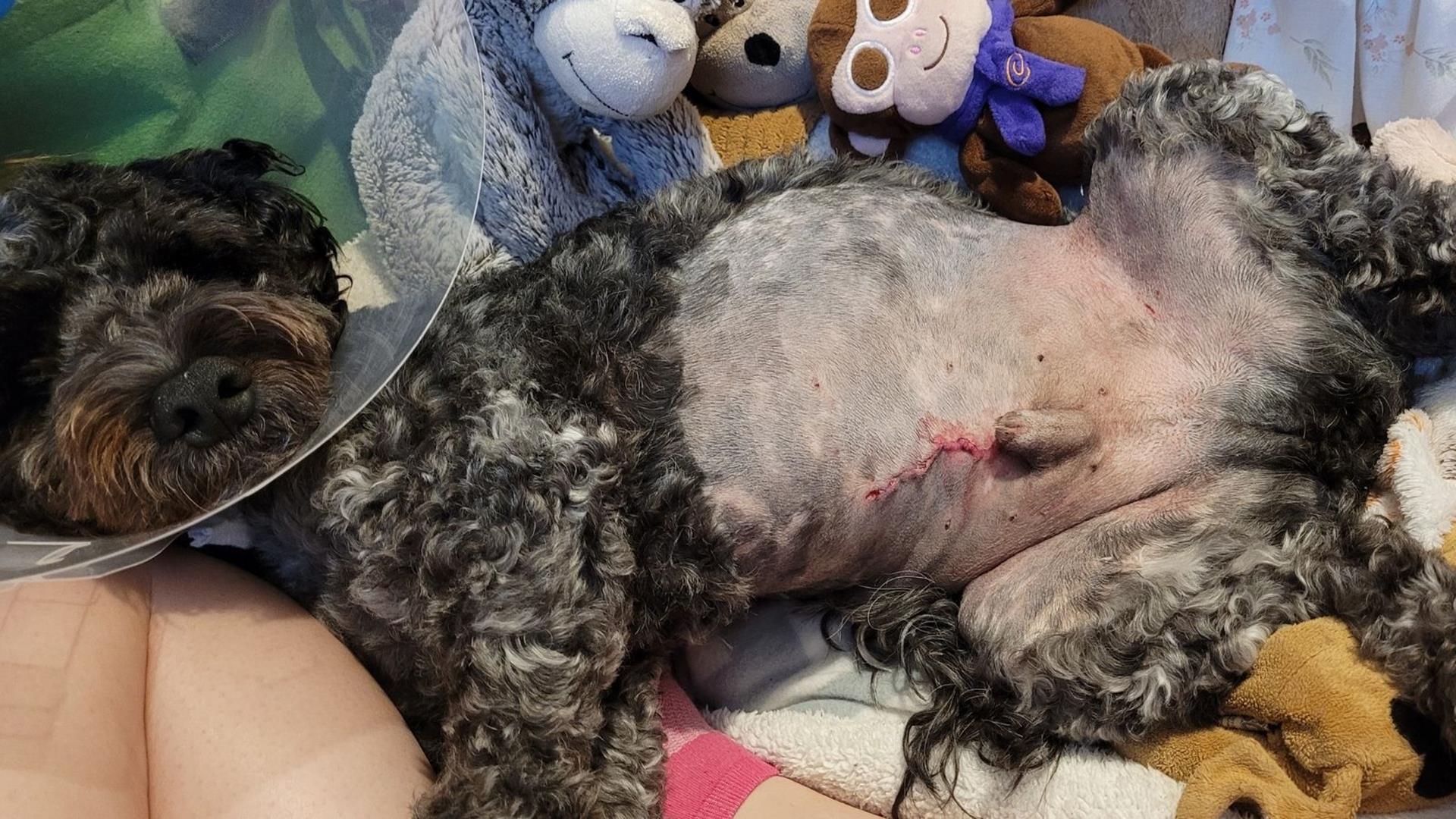 Poppy needed emergency surgery after being badly bitten by another dog during a walk.