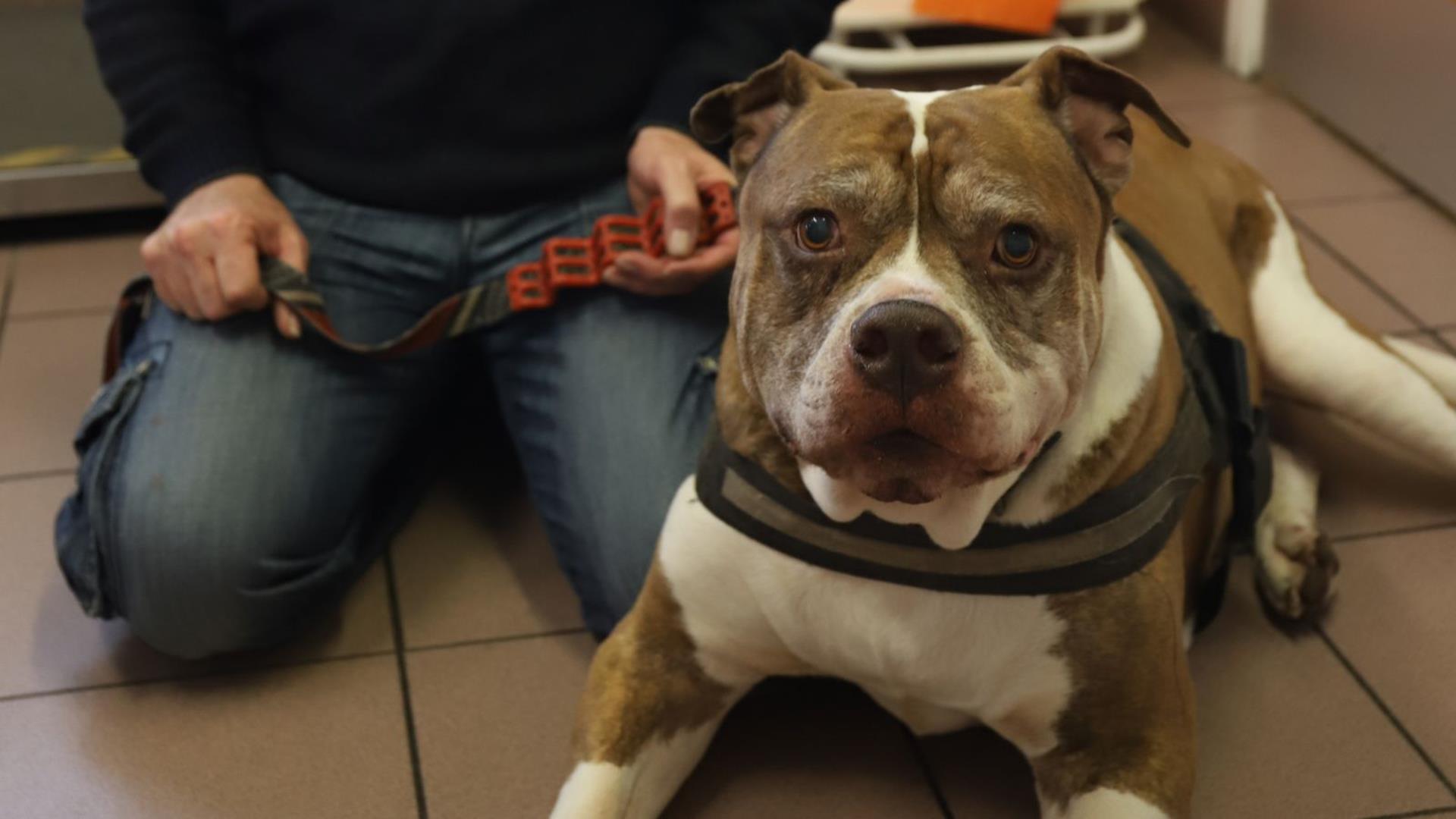 13-year-old American bulldog Roscoe weighed in at a whopping 75kg when his owner took him for a consultation at PDSA.