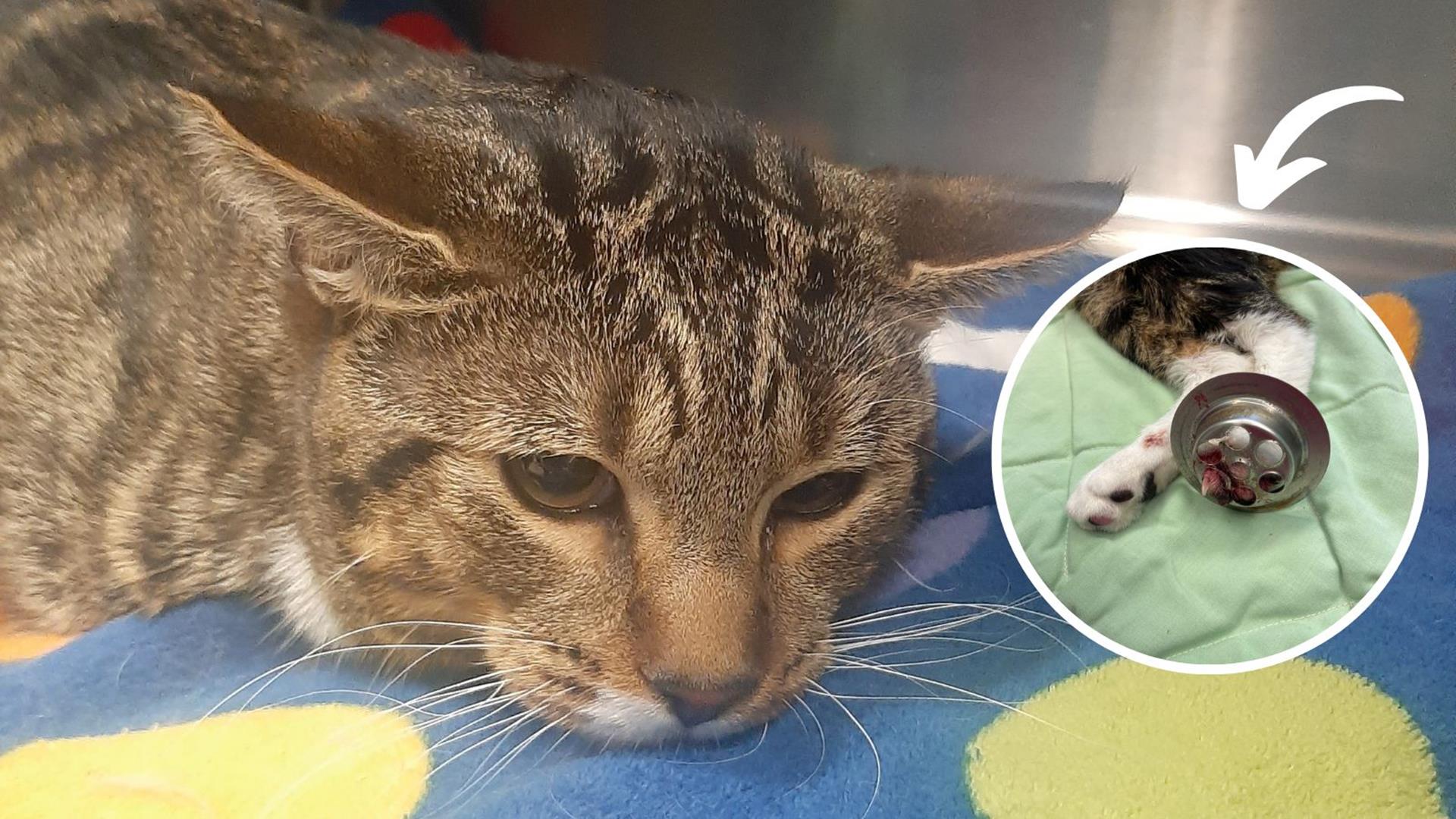Thanks to PDSA Vets, 11-month-old cat Savi is back on all four paws again after getting his toe stuck in a plughole.
