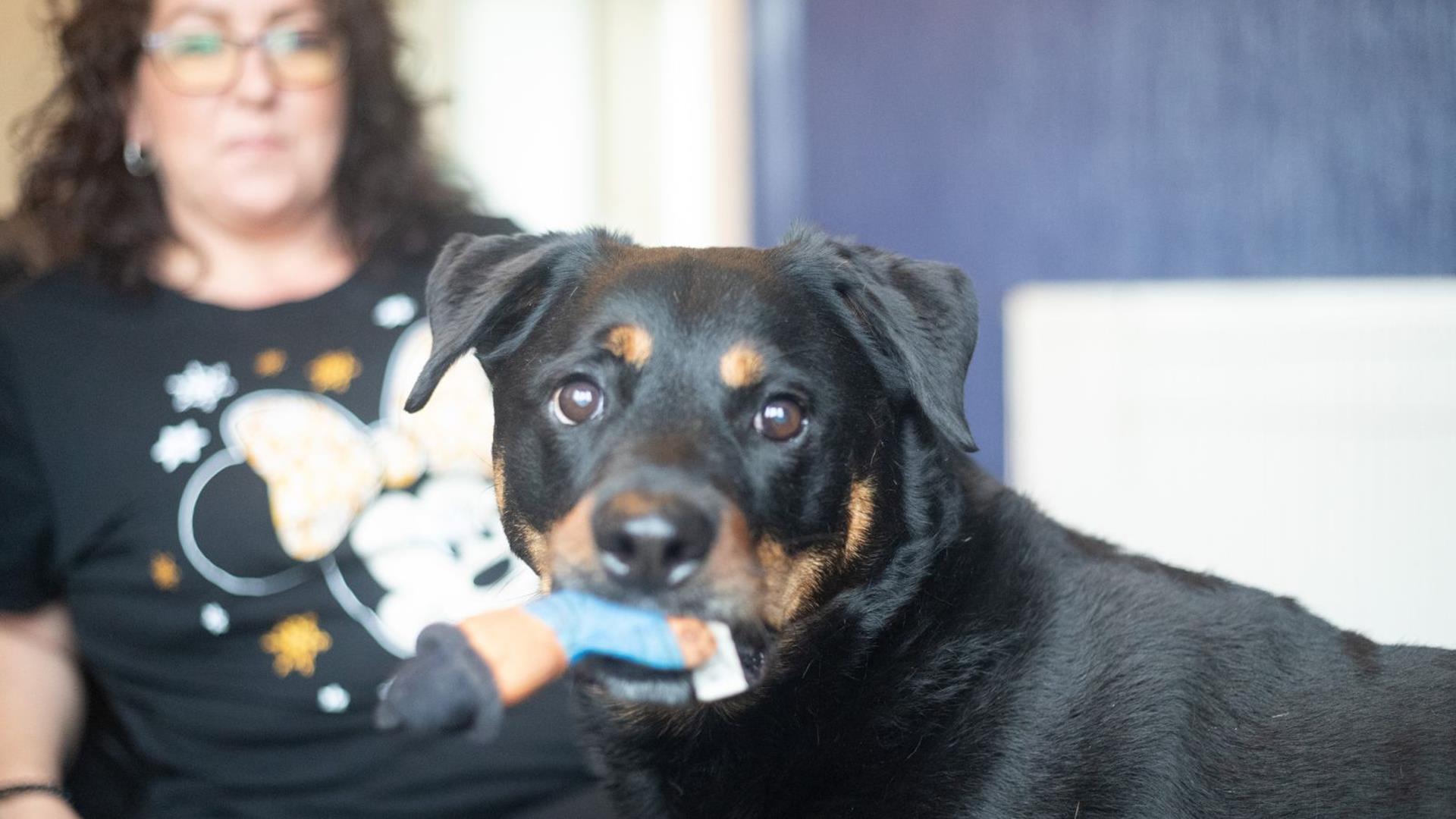 7-year-old Rottweiler cross Tinkerbelle was treated by PDSA vets for an abscess that had grown to the size of a tennis ball on her chin.