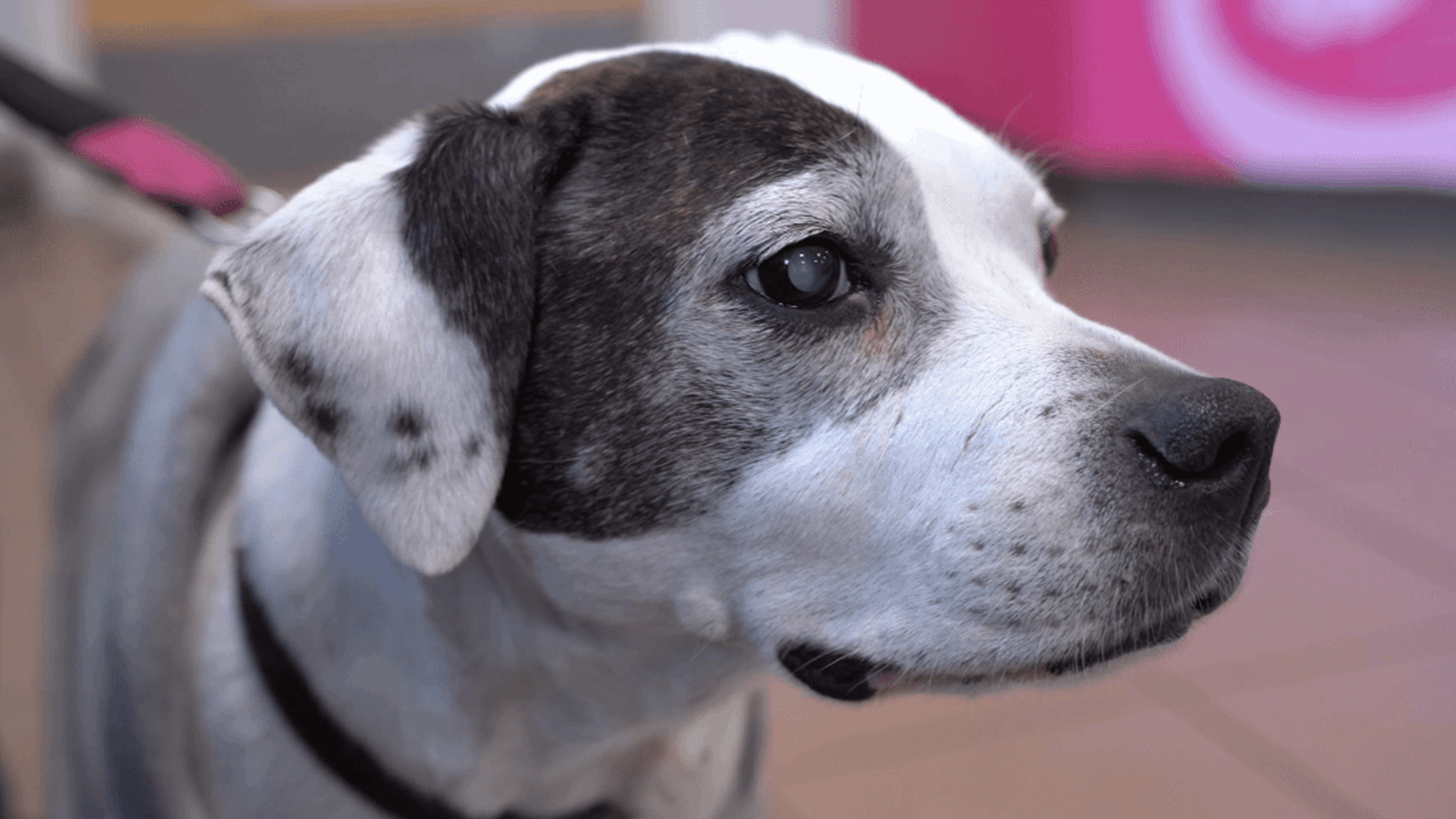 Buddy, a three-year-old Staffy, was diagnosed with a condition called dry eye after he developed red, weepy and inflamed eyes.