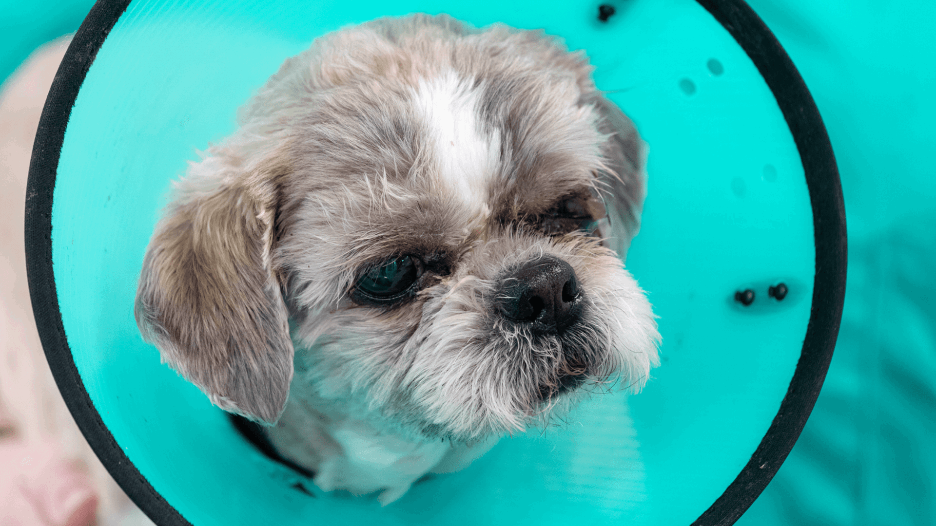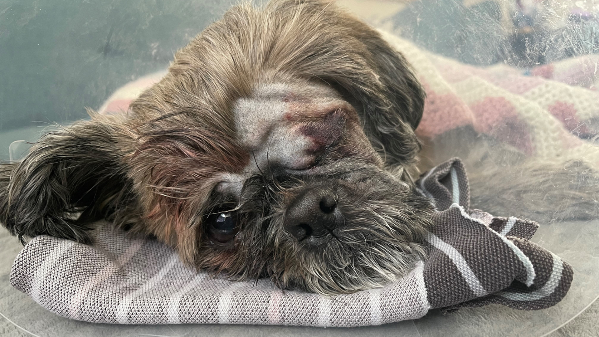 Ziggy, the Shih Tzu, needed emergency surgery at Manchester PDSA after his left eye ruptured, causing him great pain.